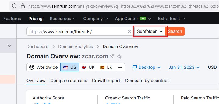 Open up your favorite tool, go to organic research, pop in one of the URLs and hit go. Make sure you set it to search the subfolder or exact URL and not the root domain.