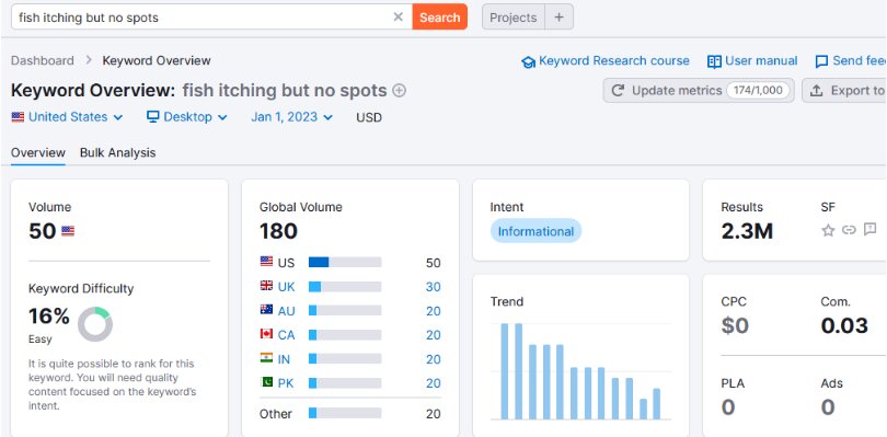 Next, run this keyword on Semrush (or any keyword tool) and check its global volume.